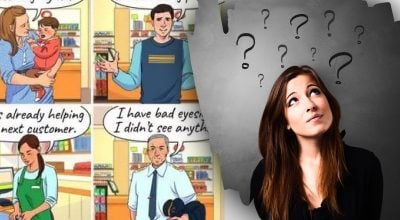 Alt, hvad du skal gøre, er at se på billedet nedenfor og identificere, hvem af personerne i butikken der har stjålet en pung. Tre af personerne på billedet taler sandt, men en af dem lyver.