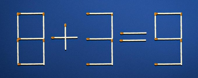 I illustrationen nedenfor kan du se et regneeksempel, der består af tændstikker: 8+3=9. Som du kan se, er det forkert. Men bare flyt en tændstik til et andet sted, og ligheden vil gå i opfyldelse.